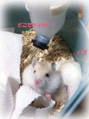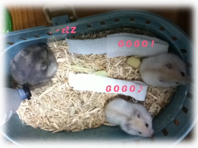 早速変化に気付いた子と爆睡中の子♪