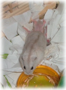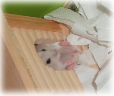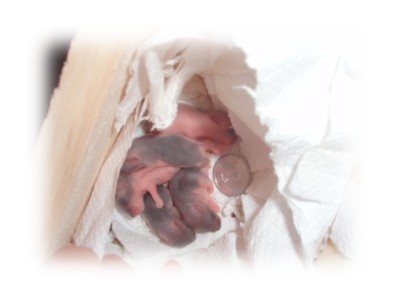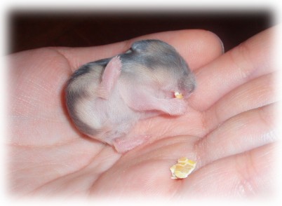 家を出る前にゲージを覗いたら、刹那ベビー薄目開いてました♪
